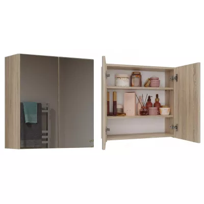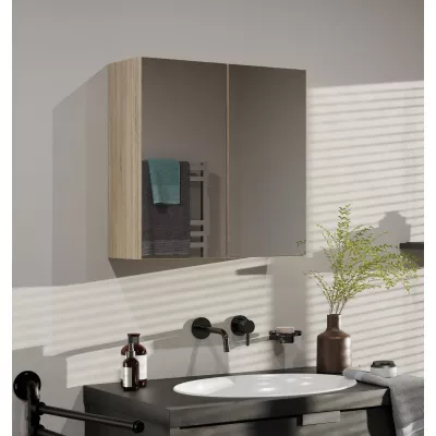 Badezimmer-Oberschrank mit zwei Türen und Spiegel MARGO – Sonoma-Eiche