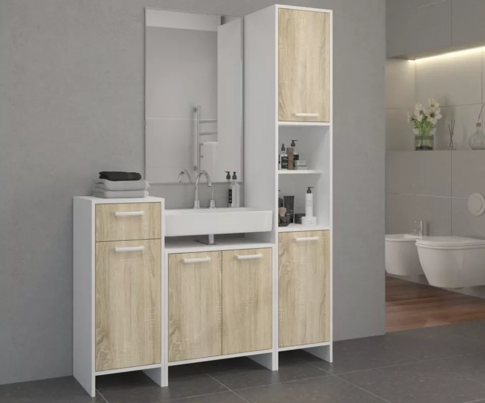 AUDREY Waschtischunterschrank - weiß / Sonoma-Eiche
