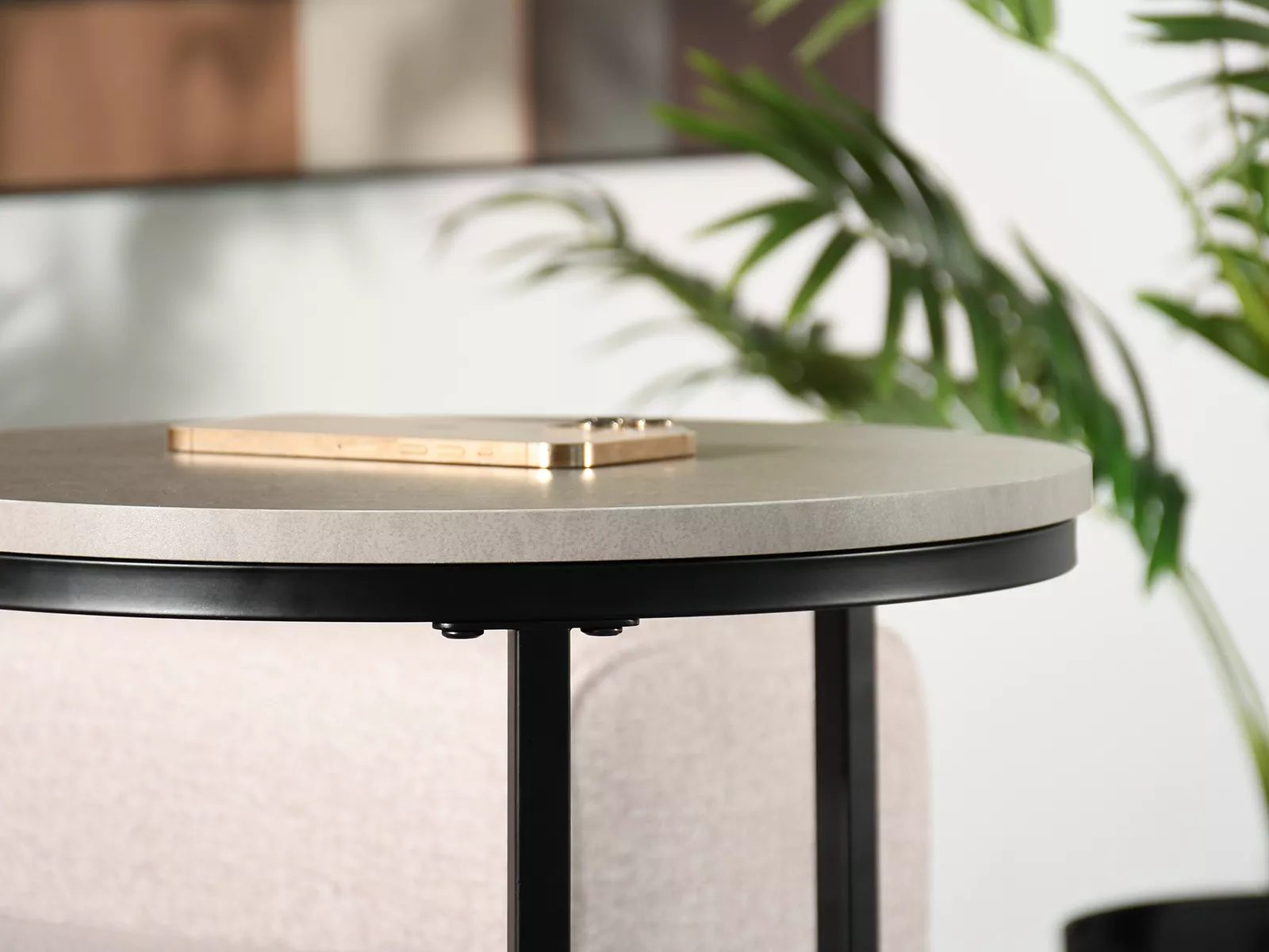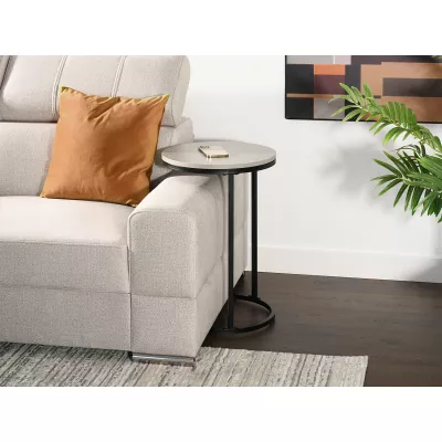 Der Beistelltisch TENOCH passt gut zu Polstermöbeln als Ablagefläche für Zeitschriften oder eine Tasse Nachmittagskaffee. Die Stabilität des Tisches wird durch eine solide Metallkonstruktion gewährleistet.