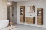 Eine Badezimmergarnitur im Farbton Eiche besticht durch ihre wundervolle Textur