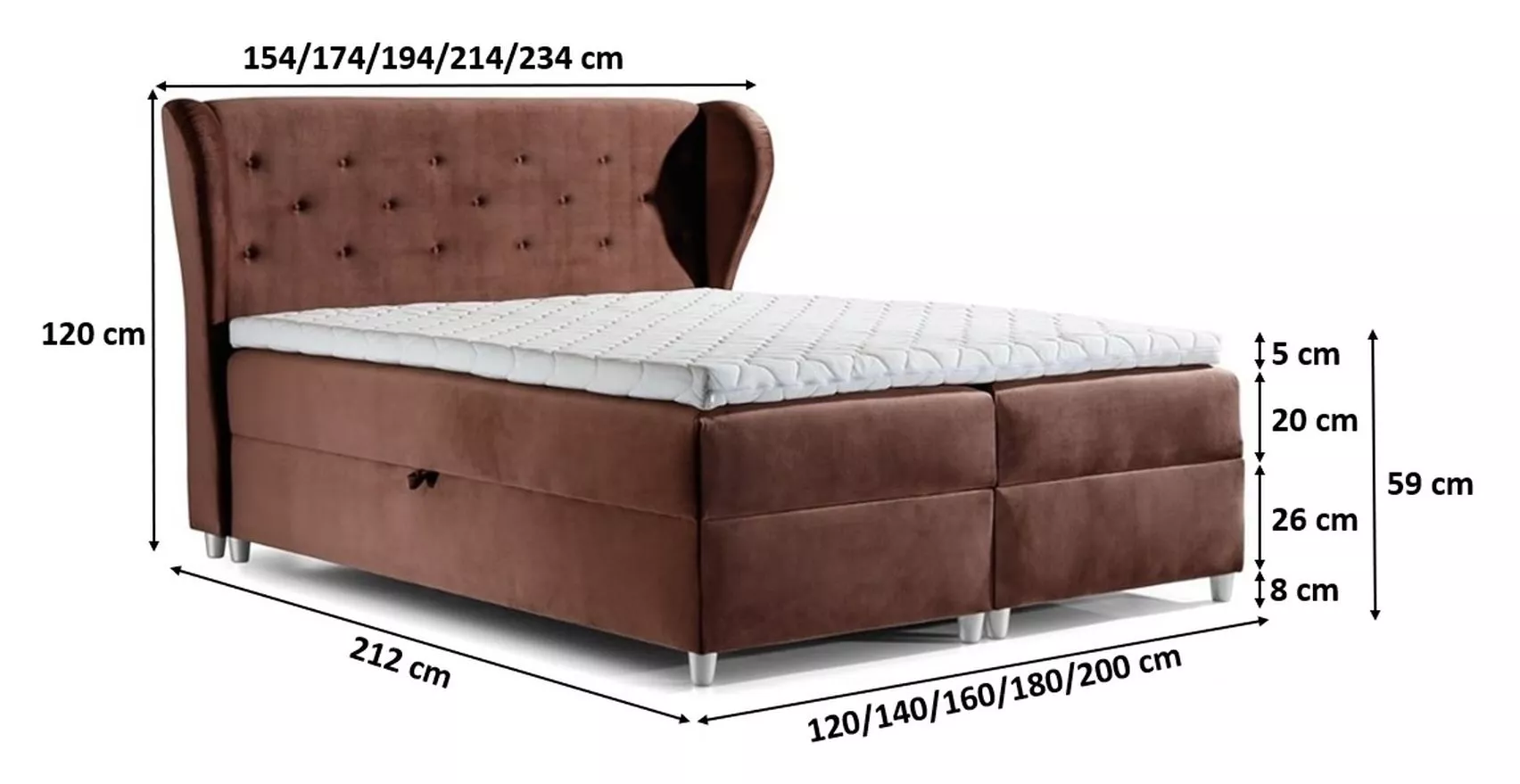 Eveli Boxspring gepolstertes Bett braun 160 + Gratis Topper
