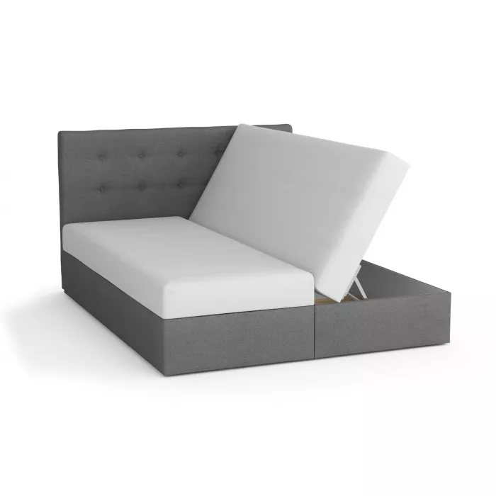 Jedes moderne Schlafzimmer sehnt sich nach einem geräumigen und besonders bequemen Doppelbett. Ein großer Vorteil des komfortablen Doppelbetts STIG ist die hohe Liegefläche, dank der Sie die Kniegelenke weder beim Hinlegen noch beim Aufstehen unnötig belasten. Ein weiterer Mehrwert besteht darin, dass das Bett mit Matratzen, Stauraum und einem ausklappbaren hölzernen Lattenrost ausgestattet ist. Bei Bedarf kann es in zwei separate Betten aufgeteilt werden.