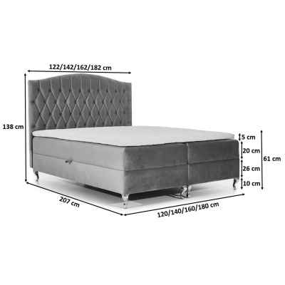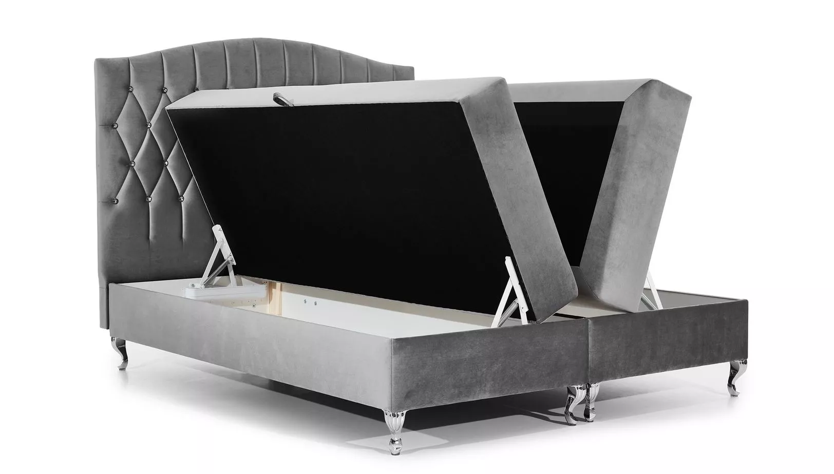 Dank der schönen Farben und dem fantastischen Bezugsmaterial ist das Bett PEGGY ein wahrlich königliches Bett. Der Samtstoff, der die Bettzarge und das Kopfteil umgibt, sorgt dafür, dass Sie sich im Schlafzimmer besonders wohlfühlen. Die Hauptmatratze besteht aus Taschenfedern und hochelastischem T30-Schaum. Der Schlafkomfort wird durch einen Topper aus hochelastischem Schaumstoff erhöht. Das gesteppte Kopfteil, an das wir uns abends vor dem Einschlafen lehnen, während wir fernsehen oder ein Lieblingsbuch lesen, hat eine elegante Steppung, die mit Kristallen verziert ist. Das Bett verfügt über zwei Aufbewahrungen, die für Ordnung sorgen.