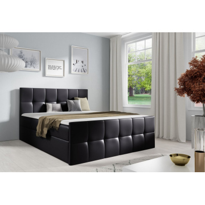 Doppelbett CHLOE – 140x200, schwarzes Öko-Leder + GRATIS-Topper