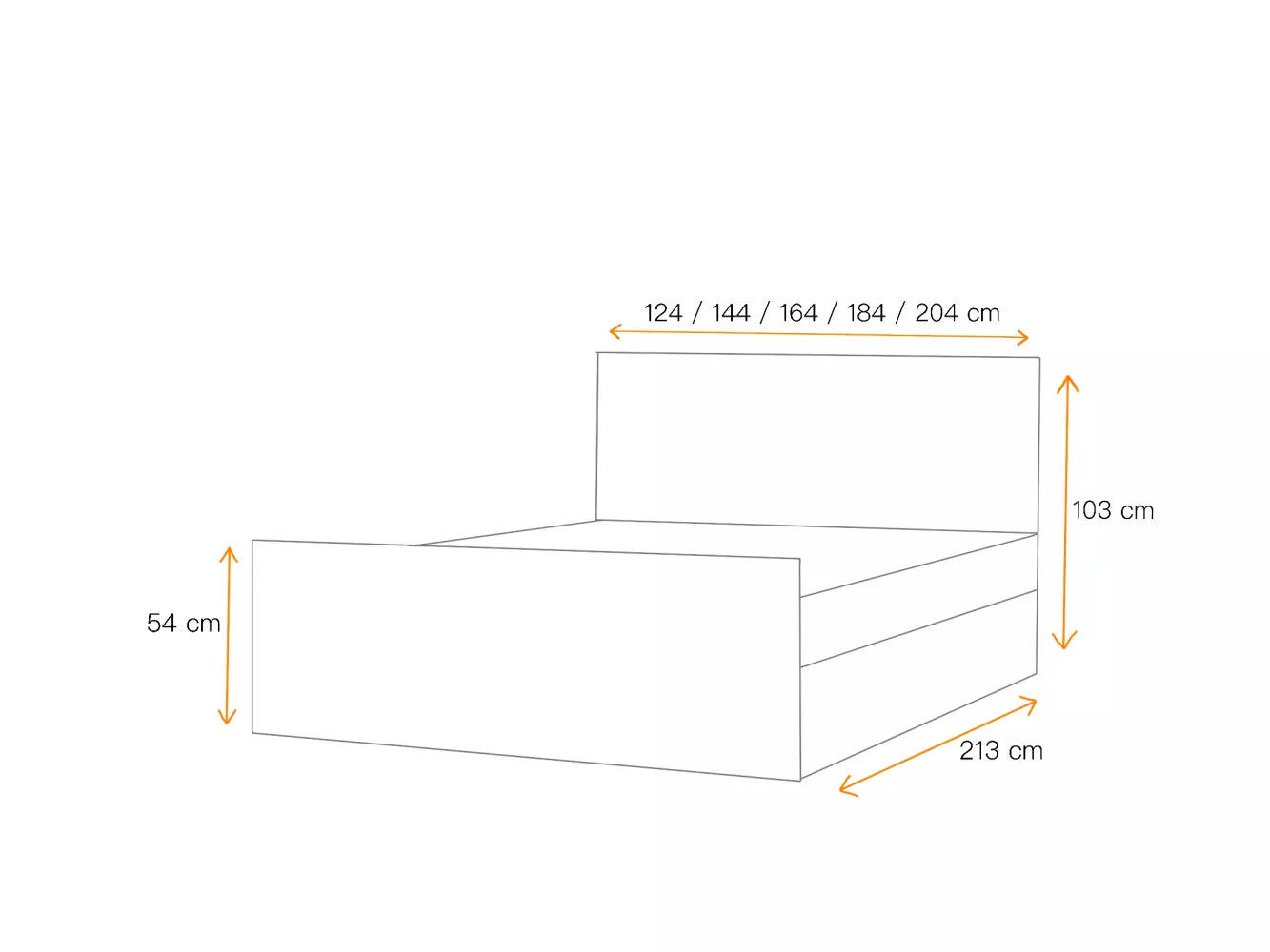 - Höhe der Stirnseite an den Füßen: 54 cm