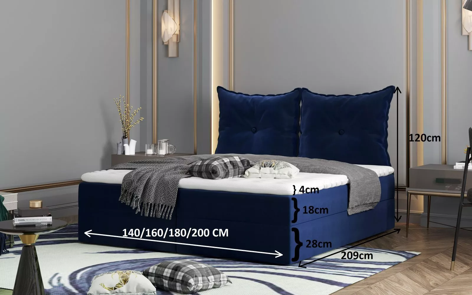 Boxspringbett PINELOPI – 140x200, Dunkelblau