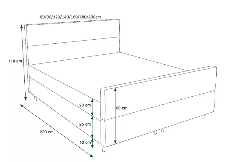 Das Boxspringbett ANGELES PLUS COMFORT eignet sich für alle modernen Schlafzimmer. Das gepolsterte Kopfteil verhindert ein Verkratzen und Verschmutzen der Wand. Das Bett verfügt über 2 Stauräume, die sich unter den Klapprosten befinden.