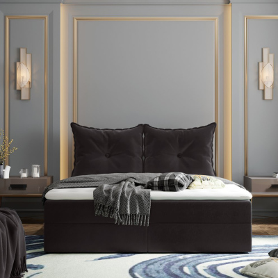 Das Boxspringbett ANGELES PLUS COMFORT eignet sich für alle modernen Schlafzimmer. Das gepolsterte Kopfteil verhindert ein Verkratzen und Verschmutzen der Wand. Das Bett verfügt über 2 Stauräume, die sich unter den Klapprosten befinden.