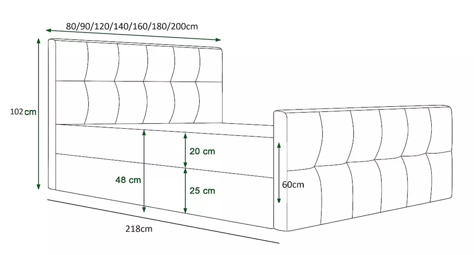 - Kopfteilhöhe am Fußende des Bettes: 60 cm