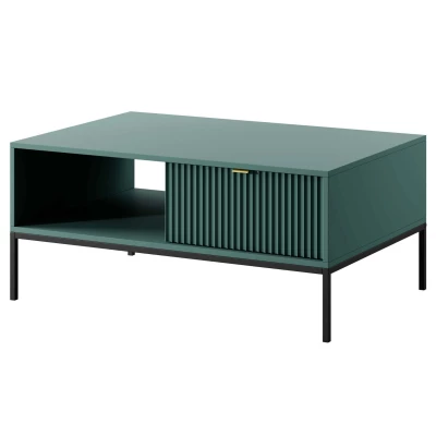 Der Couchtisch MISHEEL zeichnet sich durch sein originelles Design aus. Sie verfügt über ein geschlossenes Fach, in dem Sie die notwendigen Dinge unterbringen können. Hohe Beine verleihen dem Tisch solide Stabilität.