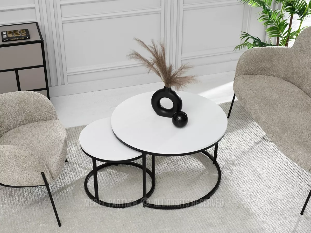 Das Couchtisch-Set JACEK passt perfekt zu gepolsterten Möbeln und eignet sich als Ablage für die Fernbedienung, ein Buch oder zur Präsentation von Dekoration. Es ist möglich, die Tische des Sets zu kombinieren oder einzeln als Couchtisch und Beistelltisch zu verwenden.