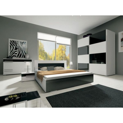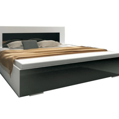 Doppelbett HENRIETA – 160x200, weiß/schwarz glänzend