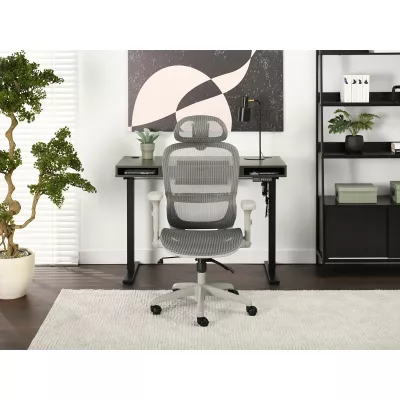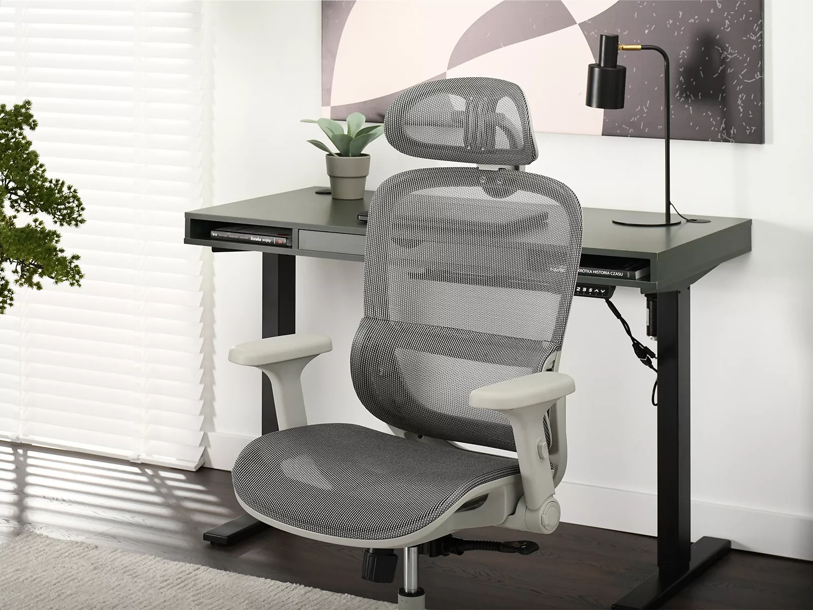 Der Drehstuhl RIONA bietet eine verstellbare Höhe, verstellbare Armlehnen und eine verstellbare Kopfstütze. Das für die Polsterung des Stuhls verwendete Mesh-Material verleiht ihm nicht nur ein einzigartiges Aussehen, sondern sorgt auch für ausreichende Belüftung und Komfort den ganzen Tag.
