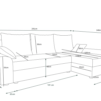 Die Eckcouch DAGMAR ist ein Modell, das Ihr Herz erobern wird. Es verfügt über bequeme Sitze und Rückenlehnen in Form von Kissen, die tagsüber und abends angenehmes Sitzen ermöglichen. Die Konstruktion besteht aus einem massiven Holzrahmen. Das Ganze ist mit einem hochwertigen Stoff bezogen, der sich angenehm anfühlt und ausreichend fest ist. Ein Vorteil ist sicherlich die eingebaute Aufbewahrung und die Möglichkeit, das Sofa aufzuklappen.