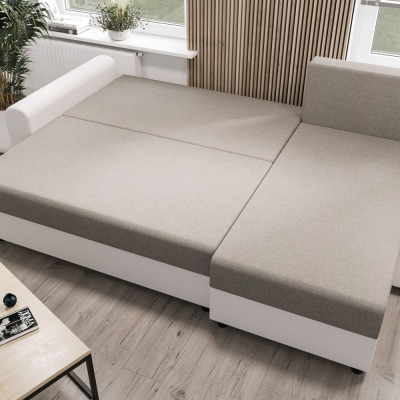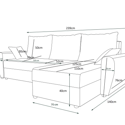 Moderne bequeme Couchgarnitur Floriana. Die hochwertige Füllung der Sitzpolster sorgt für Komfort beim Sitzen und Schlafen. Das Sofa verfügt über eine Aufbewahrung und einen Klappmechanismus. Das Sofa kann einfach zu einem Bett ausgezogen werden. Dank des Wellenfedersystems wird das Zusammensitzen mit Freunden und eventuell auch das Schlafen auf der Couchgarnitur Floriana sehr angenehm. Zur Sofagarnitur gehören außerdem Kissen, die als Rückenlehne dienen.