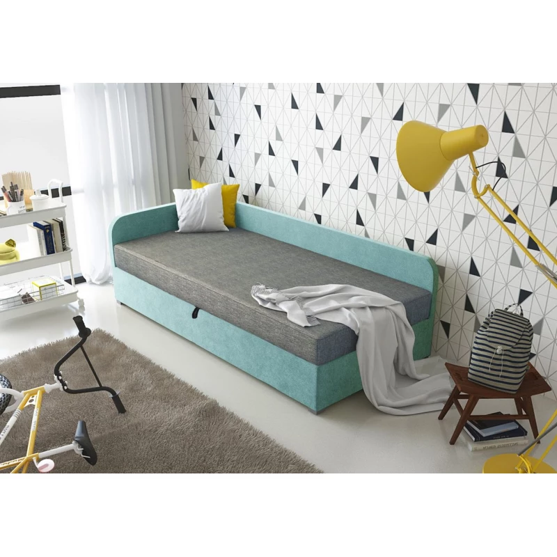 Polstereinzelbett VALESKA – 90x200, links, grau / türkis