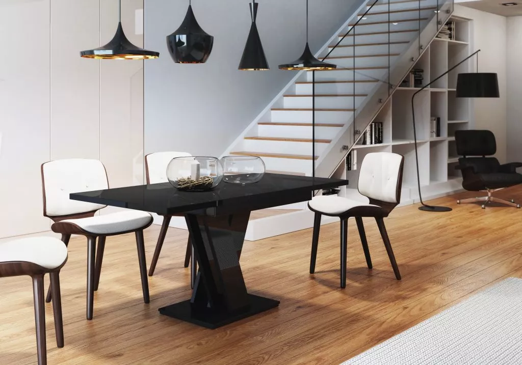Ausziehbarer Esstisch MAEL – Schwarz glänzend