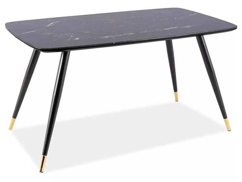 Esstisch ELON – schwarzer Stein / schwarz / gold