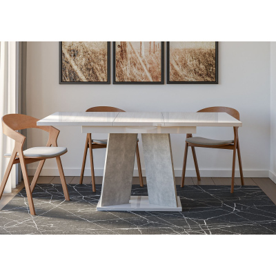 Ausziehbarer Esstisch ENDRE – Weiß glänzend / Stein