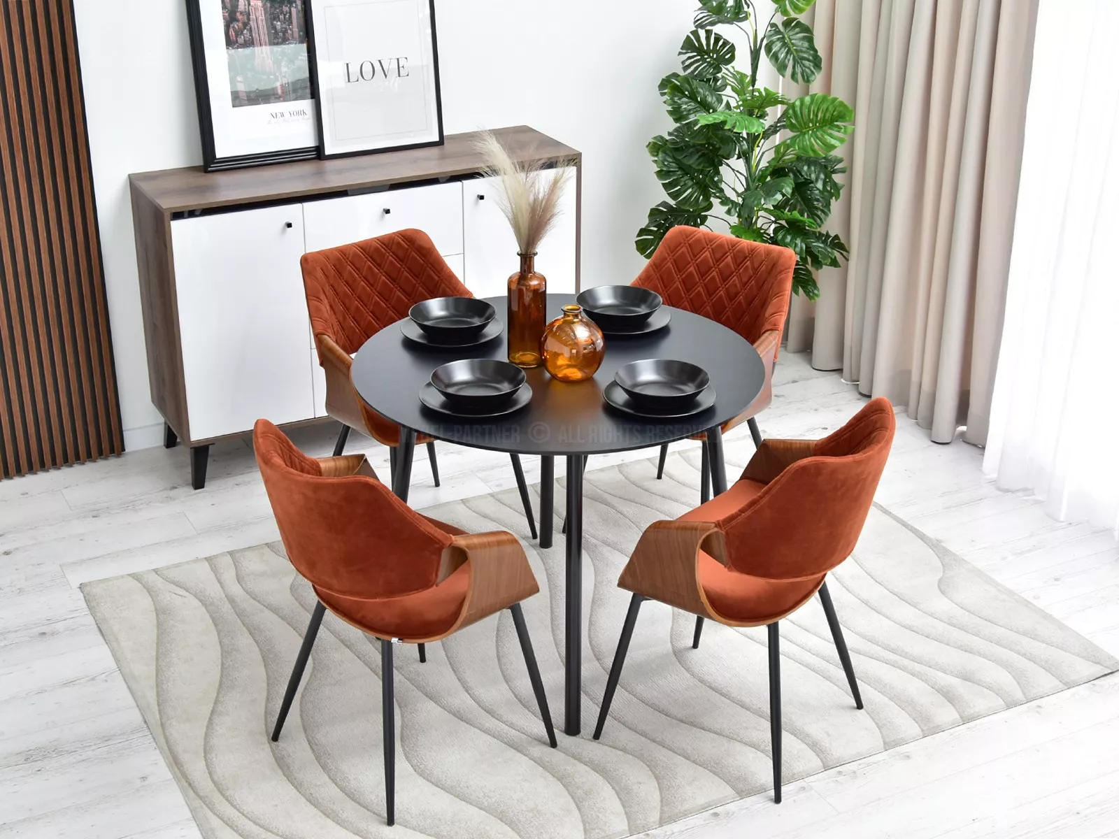 Der Design-Esszimmerstuhl NENET ist aus hochwertigem Holz mit einer Metallkonstruktion gefertigt. Die elegante Polsterung fühlt sich angenehm an.