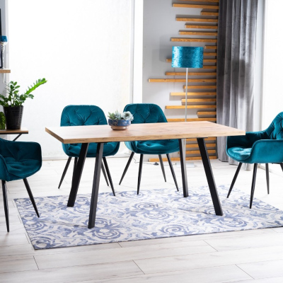 Gepolsterter Esszimmerstuhl LUSINE – Türkis / Schwarz