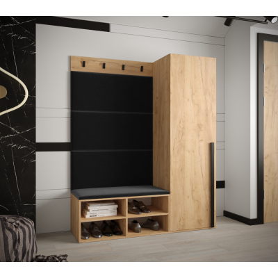 Flurwand mit gepolsterten Paneelen HARRISON – Eiche Gold, schwarze Paneele