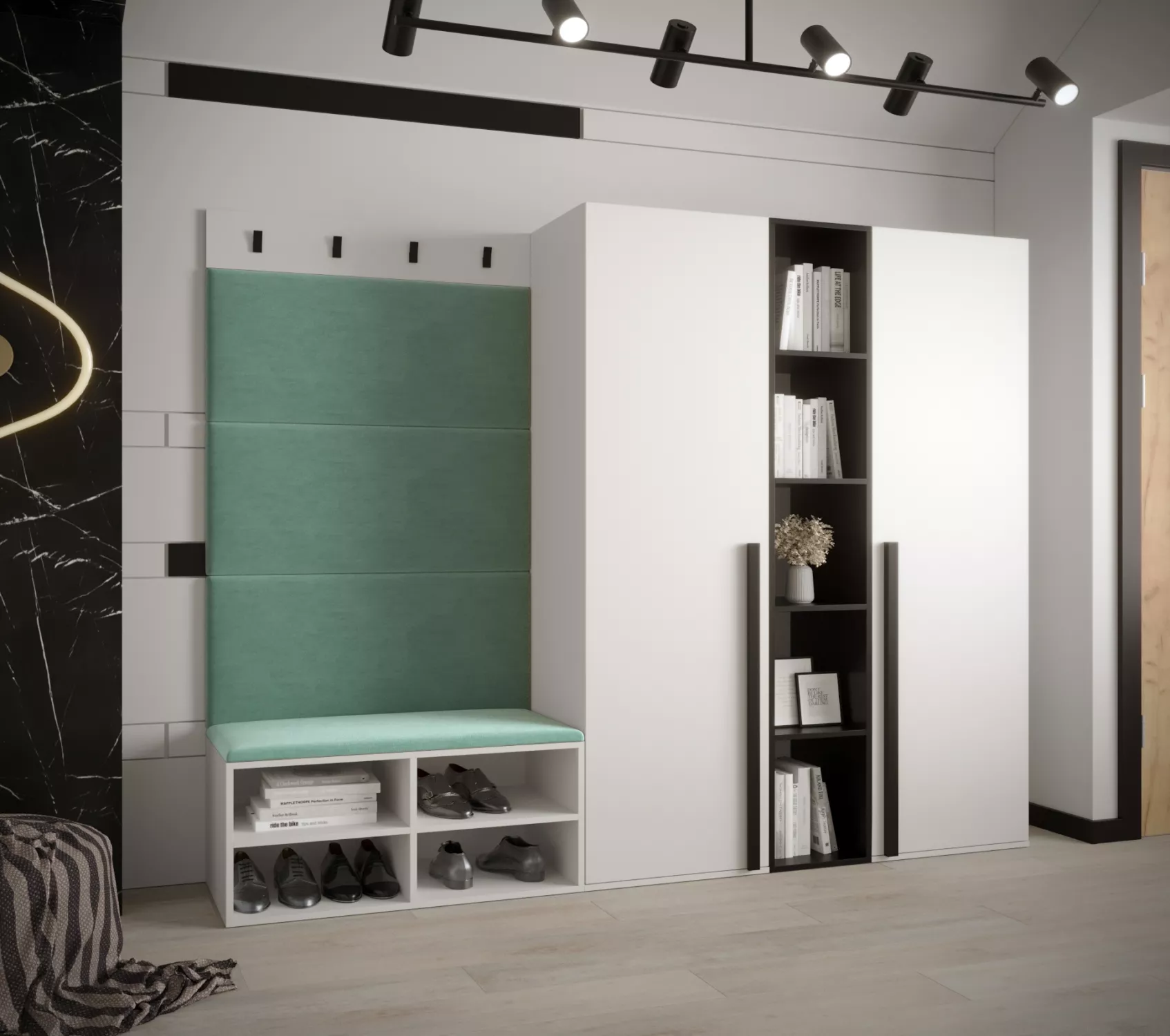Große Flurwand mit gepolsterten Paneelen HARRISON – weiß, mintfarbene Paneele