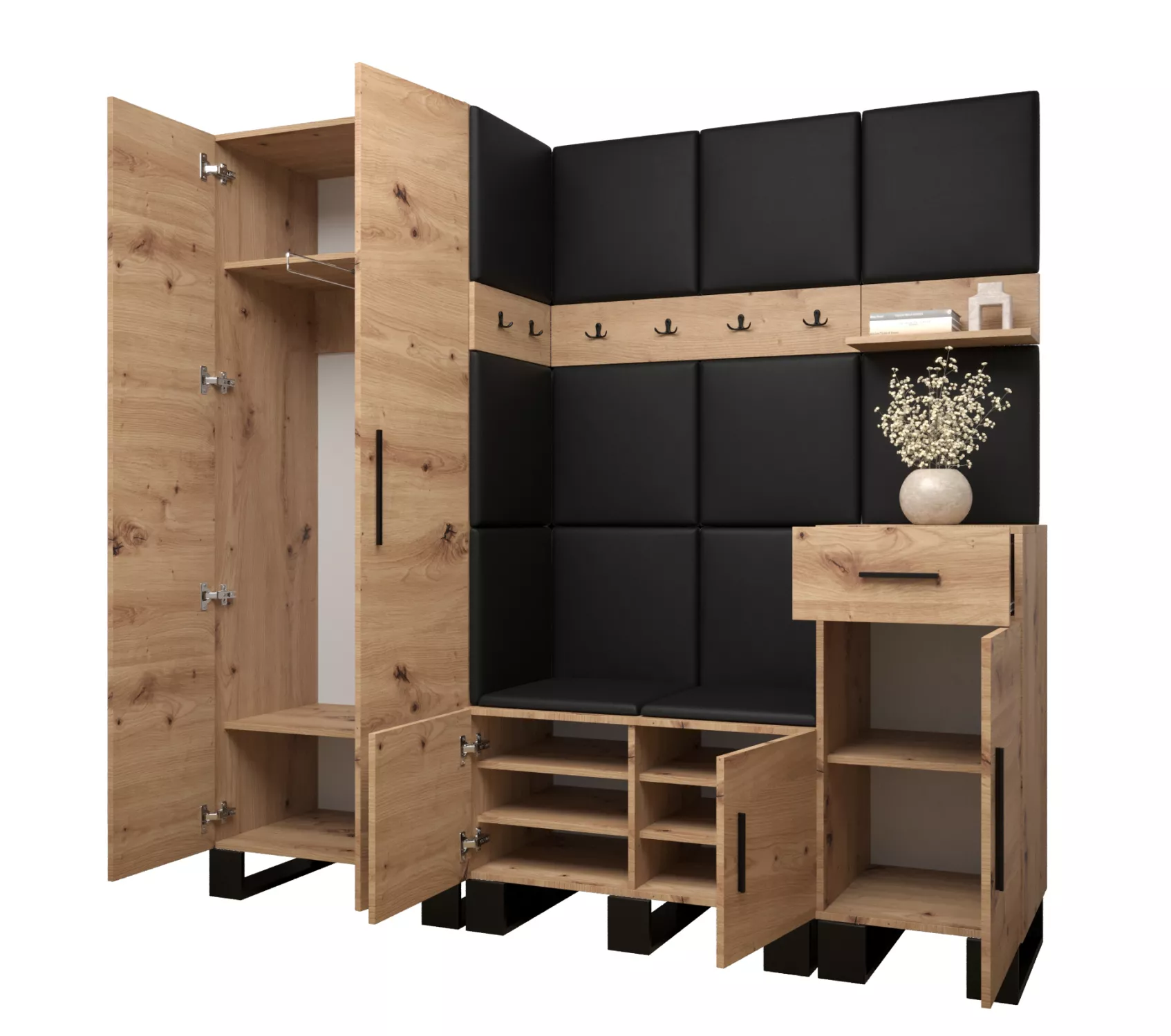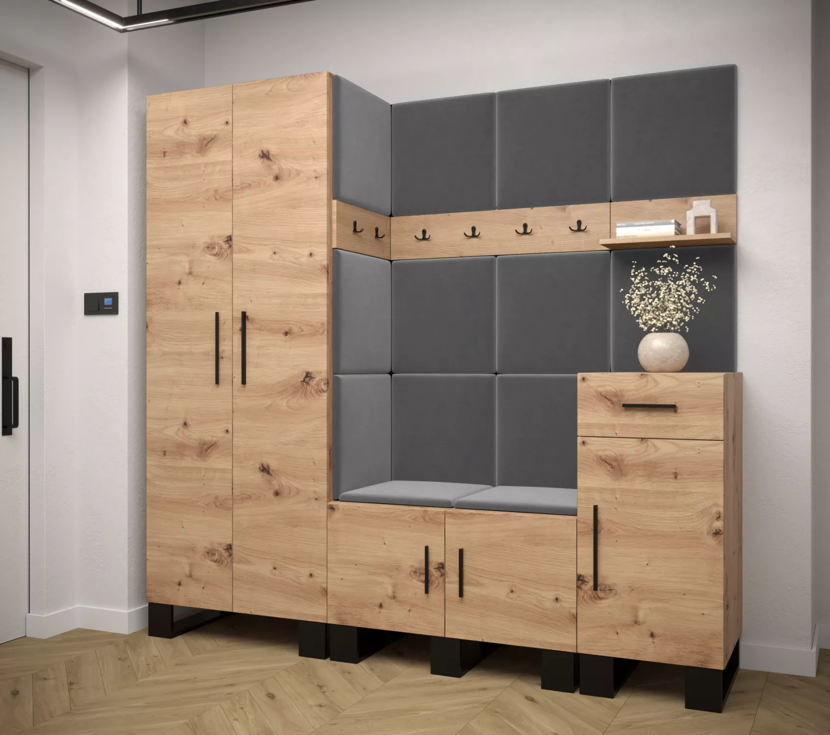 Flur-Garnitur RUMIE 1 – Eiche Artisan, graue Paneele