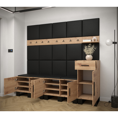 Flur-Garnitur RUMIE 8 – Eiche Artisan, schwarze Paneele