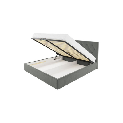 Das Bett verfügt über einen Lattenrost und Stauraum.