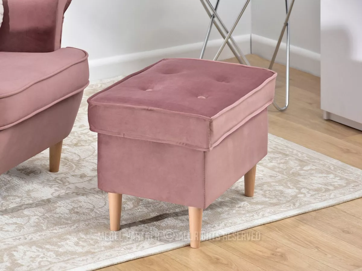 Der gepolsterte Hocker DENIZ ist eine moderne und designorientierte Ergänzung für jedes Interieur. Er bietet Komfort beim Sitzen oder Ausruhen der Füße.