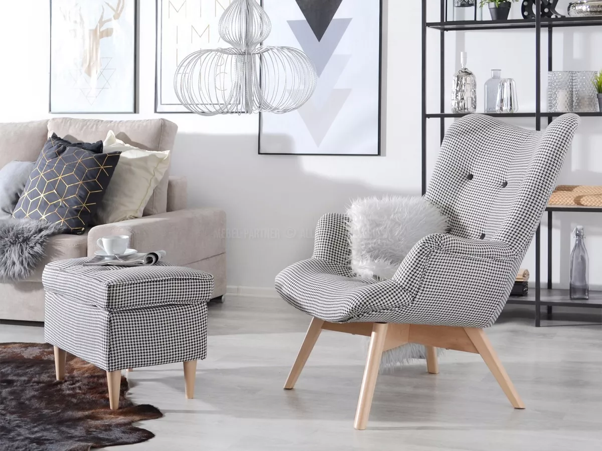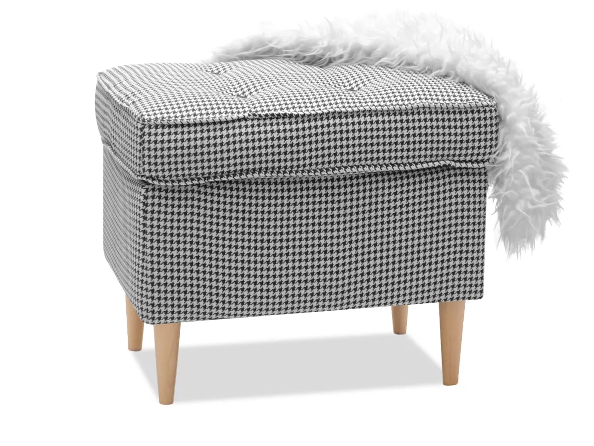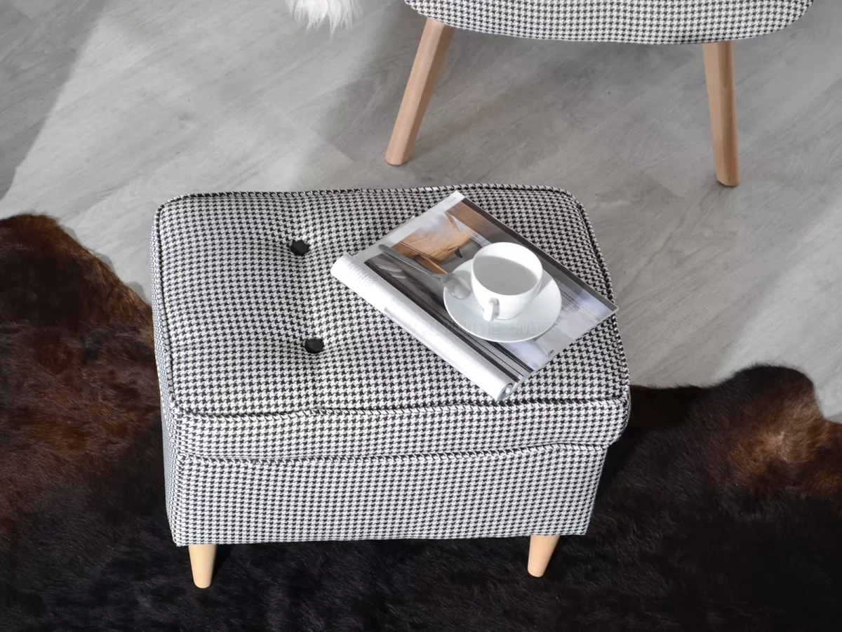 Polsterhocker DENIZ - schwarz-weiß / Buche