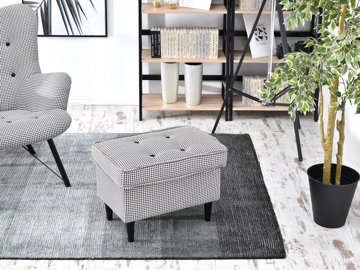 Der gepolsterte Hocker DENIZ ist eine moderne und designorientierte Ergänzung für jedes Interieur. Er bietet Komfort beim Sitzen oder Ausruhen der Füße.