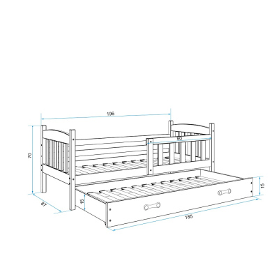 Kinderbett mit Zustellbett ohne Matratzen 80x190 BRIGID – Kiefer / Weiß
