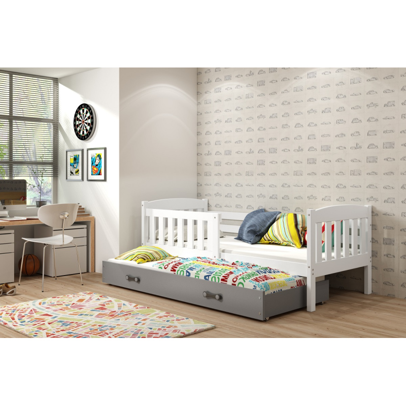 Kinderbett mit Zustellbett ohne Matratzen 90x200 BRIGID – Weiß / Graphit