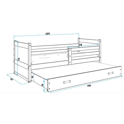 Kinderbett mit Zustellbett ohne Matratzen 90x200 FERGUS – Kiefer / Graphit