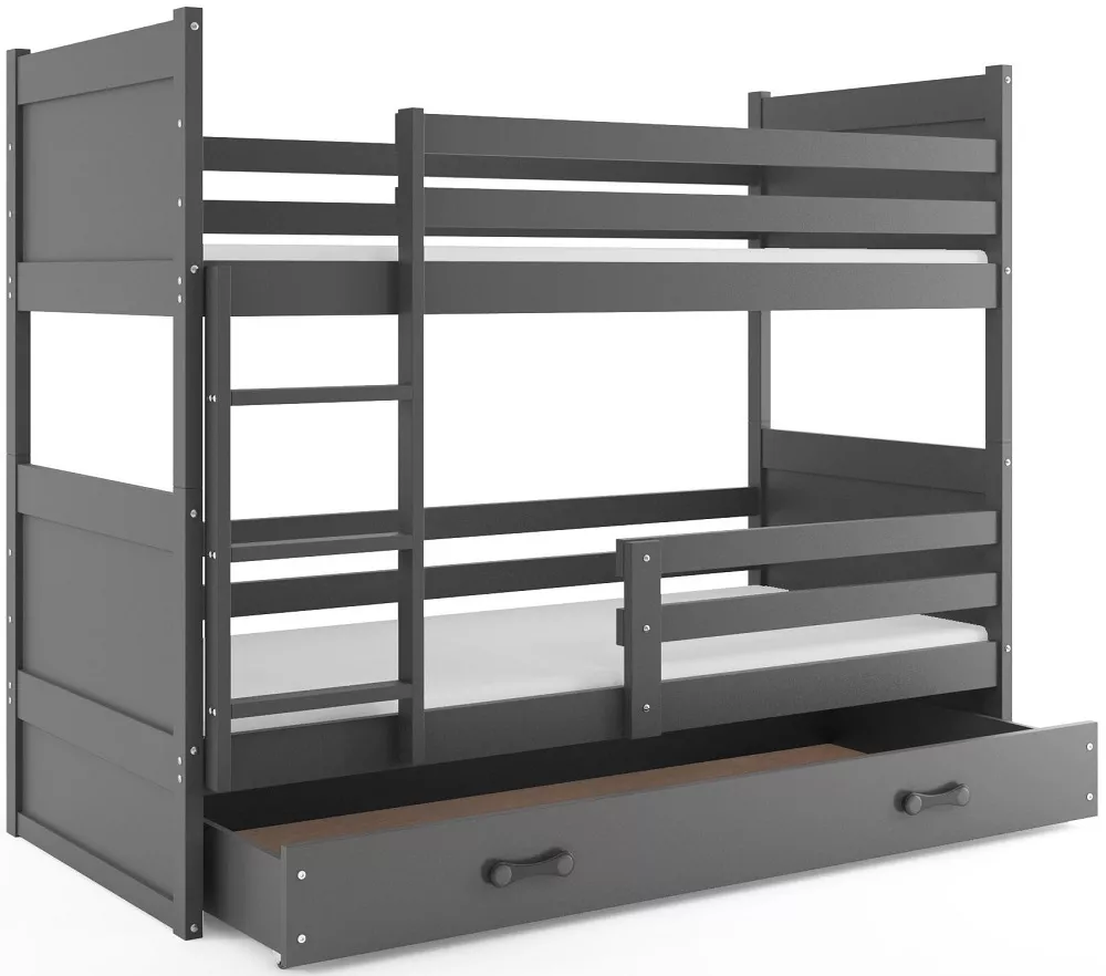 Kinderhochbett mit Stauraum ohne Matratze 90x200 FERGUS – Graphit