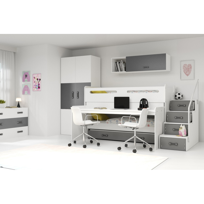 Kinderhochbett mit Stauraum ohne Matratzen 80x200 IDA 1 – Weiß / Graphit