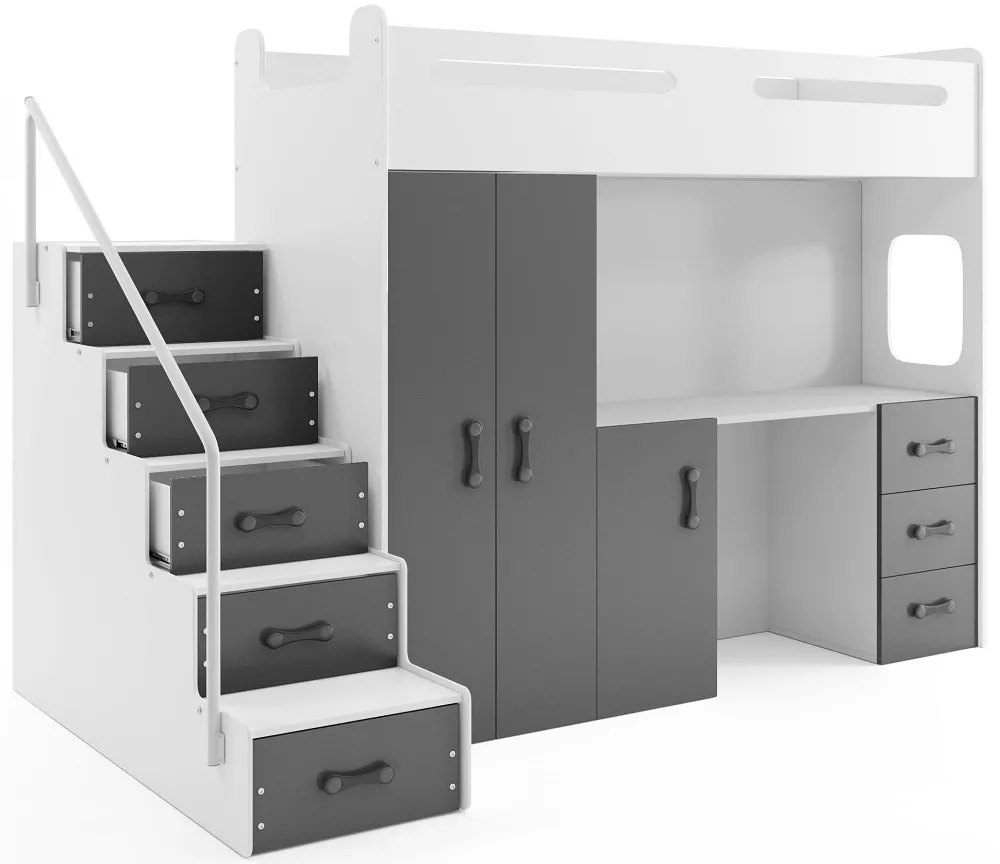 Kinderhochbett mit Stauraum und Matratze 80x200 IDA 4 – Weiß / Graphit
