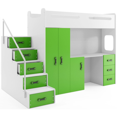 Kinderhochbett mit Stauraum ohne Matratze 80x200 IDA 4 – Weiß / Grün