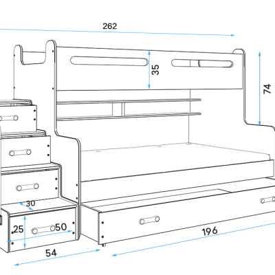 Das multifunktionale Hochbett mit Stauraum bietet eine einfache Lösung, wenn Platz zum Schlafen, Spielen und Lernen fehlt. Mit dem Kauf dieses Bettes erhalten Sie eine ganze Reihe weiterer Möbelstücke, wie z. B. Leiter mit Stauraum, die je nach Bedarf links oder rechts am Bett angebracht werden kann und praktische Regale für Lieblingsbücher.