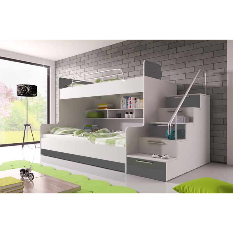 Kinderhochbett RENI 2 – 90x200, Weiß / Grau