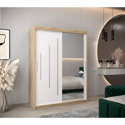 Kleiderschrank mit Spiegel ROZALIE – Breite 150 cm, Eiche sonoma / weiß
