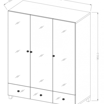 Eleganter dreitüriger Kleiderschrank APRICA – Breite 129 cm, grau