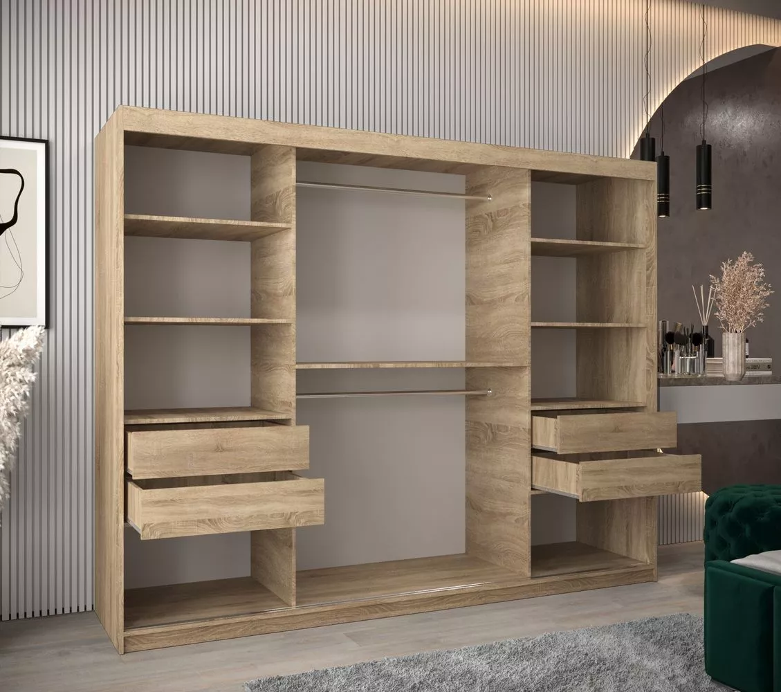 Schwebetürenschrank mit einer Breite von 250 cm TIMEA – Eiche Sonoma