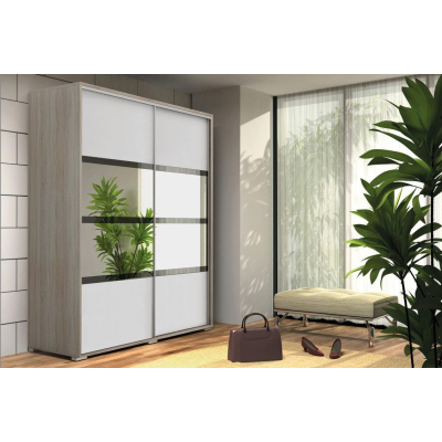 Geräumiger Kleiderschrank mit Spiegel 200/215 CELESTINO 2 – Eiche Sonoma / weiß