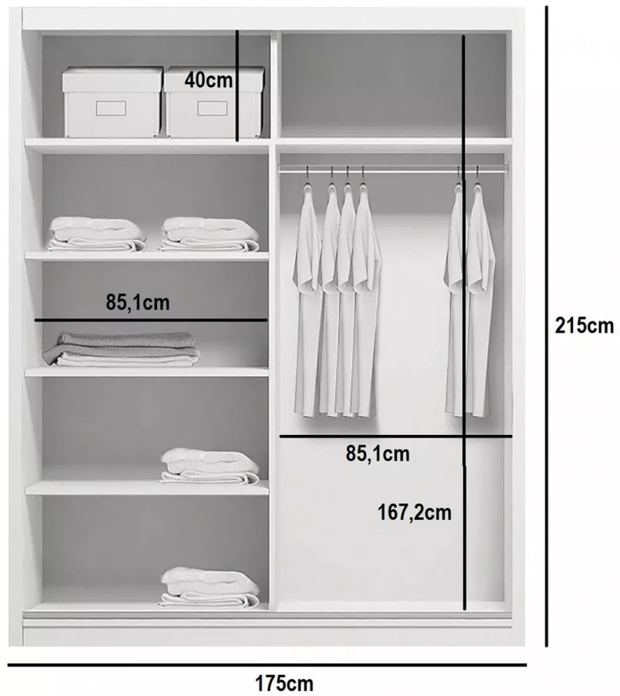 Der zeitlose Kleiderschrank mit einer Breite von 175 cm wird Ihr Interieur perfekt ergänzen. Die Qualität der LTD-Verarbeitung wird auch anspruchsvolle Nutzer erfreuen, die praktischen Schiebetüren werden Sie im Kampf gegen den Platzmangel zu schätzen wissen. Das Angebot zeichnet sich nicht nur durch sein modernes Design, sondern auch durch seine stabile Struktur aus. Im Inneren des Schranks befinden sich Regale und eine Garderobenstange.