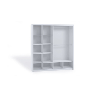 Der Kleiderschrank Bryan besticht durch sein schlichtes Design und passt zu jeder modernen Einrichtung. Im Inneren befinden sich mehrere Regale und zwei Garderobenstangen. Schubladen für den Schrank können weiter unten gekauft werden.