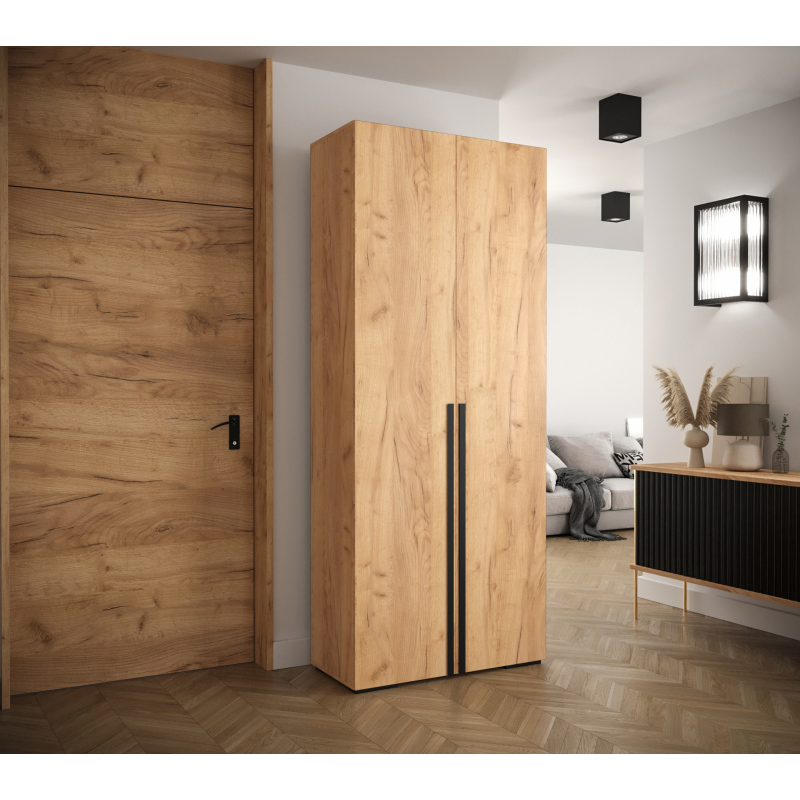 Der Kleiderschrank Mariya in modischem Design und mit wählbaren Griffen verleiht dem Schrank einen einzigartigen Charakter, dank welchem er sich für das Schlafzimmer, Wohnzimmer und den Flur eignet.