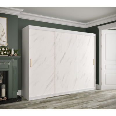 Schwebetürenschrank MAREILLE 1 – Breite 250 cm, Weiß / weißer Marmor